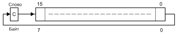 | Операция | C -> MSB -> MSB-1 … LSB+1 -> LSB -> С | |