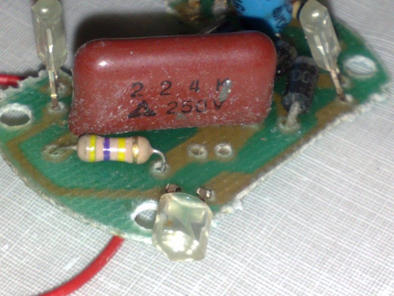 Но ночник питается от бытовой сети 220 Вольт, поэтому нужен блок питания, который сможет запитать цепочку светодиодов используемых в ночнике. Популярны ночники с применением 2, 4 и 8 светодиодов. Почти во всех ночниках применяется бестрансформаторная схема блока питания, в редчайших случаях внутри ночника можно встретить только один ограничительный резистор.