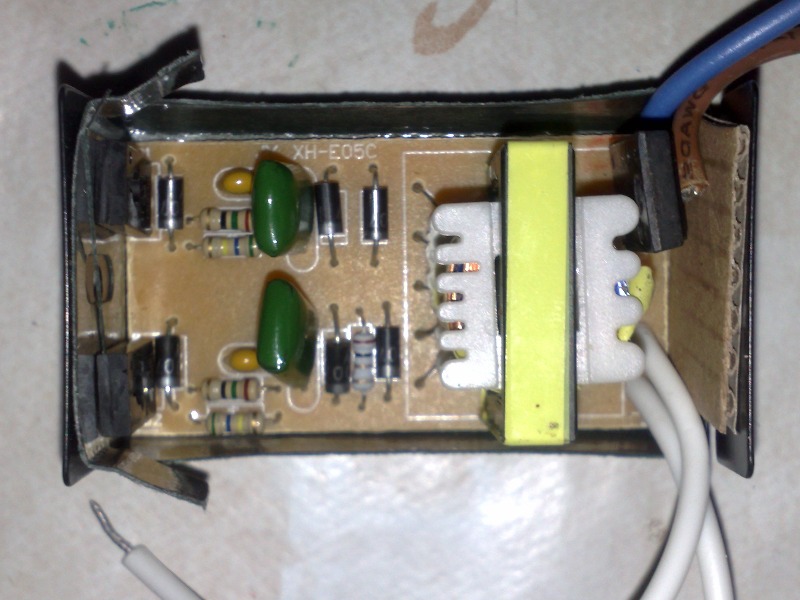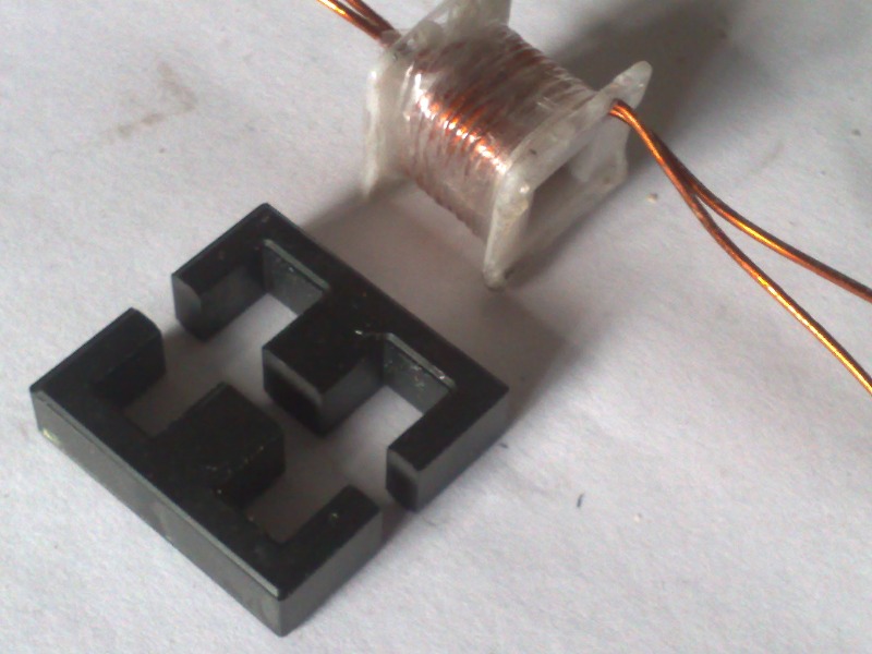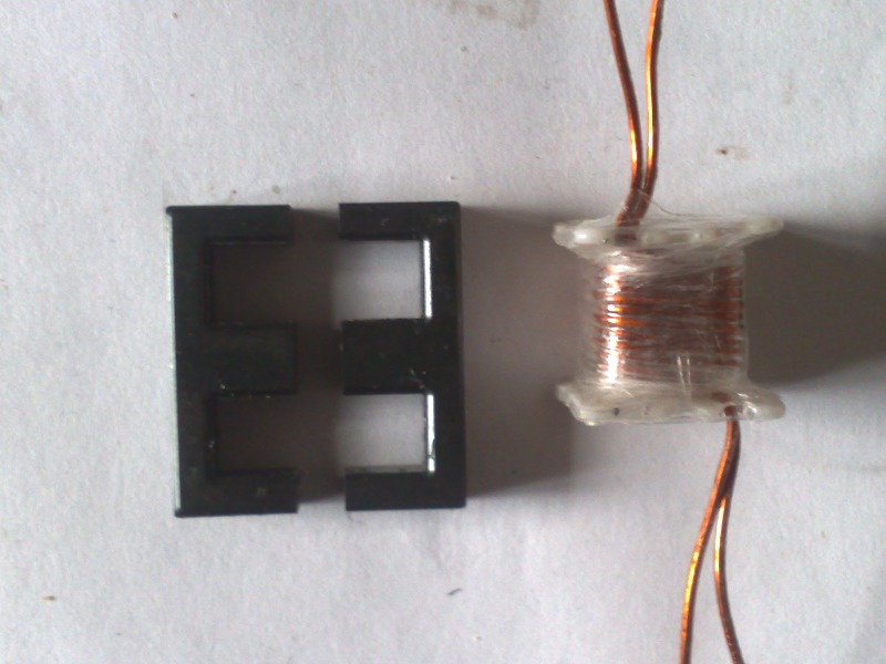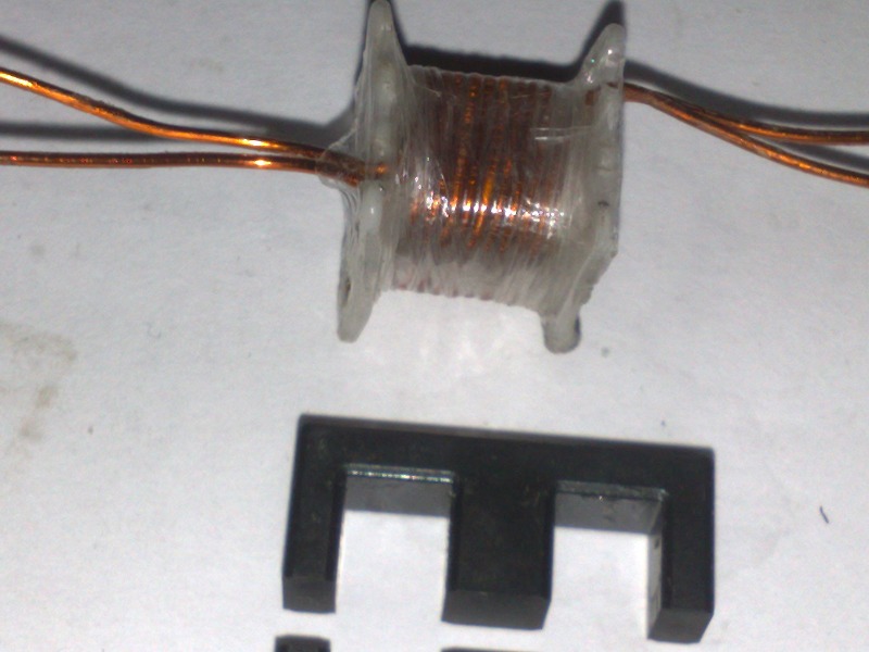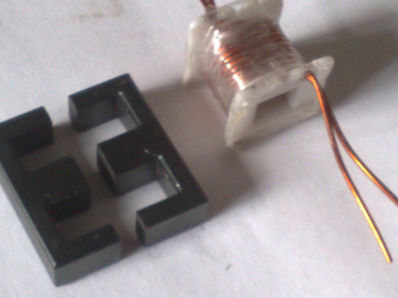 Трансформатор мотается на ш-образном сердечнике от китайского электронного трансформатора на 30-50 ватт, такие трансформаторы стоят всего доллар и предназначены для питания 12-Вольтовых галогенных ламп.