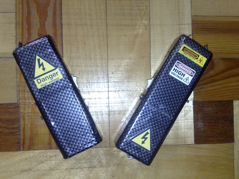 Питание 7,2-7,4 Вольт, емкость аккумуляторов 650-3300мА/час. Можно использовать как никель металл-гибридные и никель кадмиевые, так и литий ионные/полимерные аккумуляторы - с указанным напряжением мощность в районе 40 ватт, а мощность 70 ватт была получена с питанием 12 Вольт 1100мА/ч.