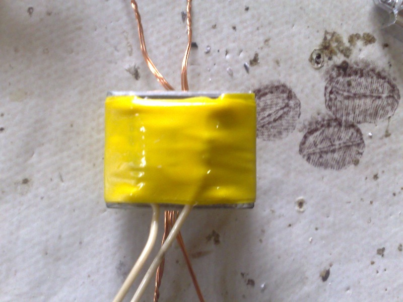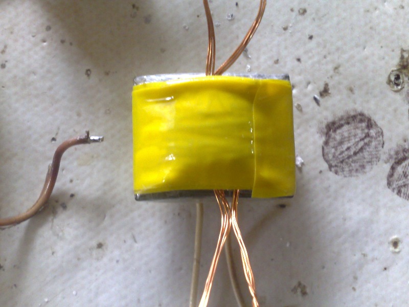 Для начала нужно разобрать трансформатор, убрать все штатные обмотки оставив только голый каркас с сердечником. На каркас мотается сначала первичная обмотка, которая состоит из 2х5 витков провода 0,8-1мм. Обмотка мотается сразу двумя жилами. Затем нужно сфазировать обмотки, подключая конец первой половины обмотки к началу второй или наоборот. После обмотку нужно изолировать и мотать вторичную обмотку. Обмотка должна состоять из 700-1000 витков, мотается по слоям, каждый слой 80-100 витков. Межслойные изоляции укладываются самым обыкновенным прозрачным скотчем, Готовый трансформатор не нужно заливать эпоксидной смолой.