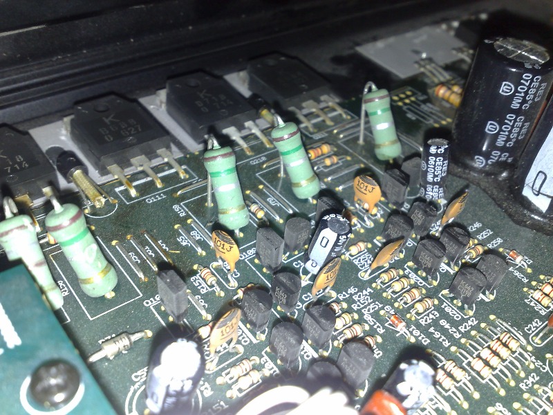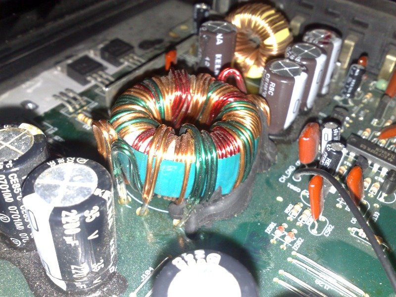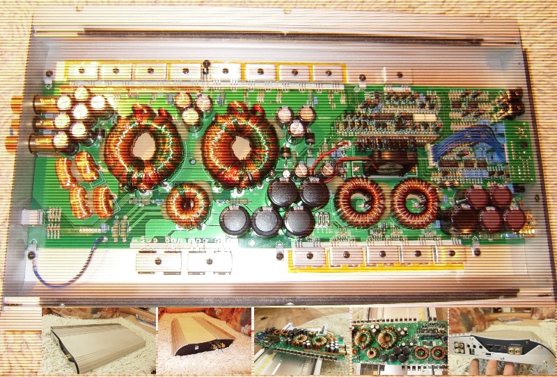 Такие усилители тоже снабжены предварительными усилителями и фильтром, может иметься также плавная регулировка фазы. Импульсные схемы инверторов позволяют сконструировать довольно компактные, но одновременно мощные инверторы, напряжение выпрямляется мощными импульсными диодами и сглаживается электролитическими конденсаторами, затем только подается на схемы усилителей. В основном усилители питаются от одной силовой обмотки, но в более дорогих автоусилителях могут иметься отдельные инверторы для питания каналов.