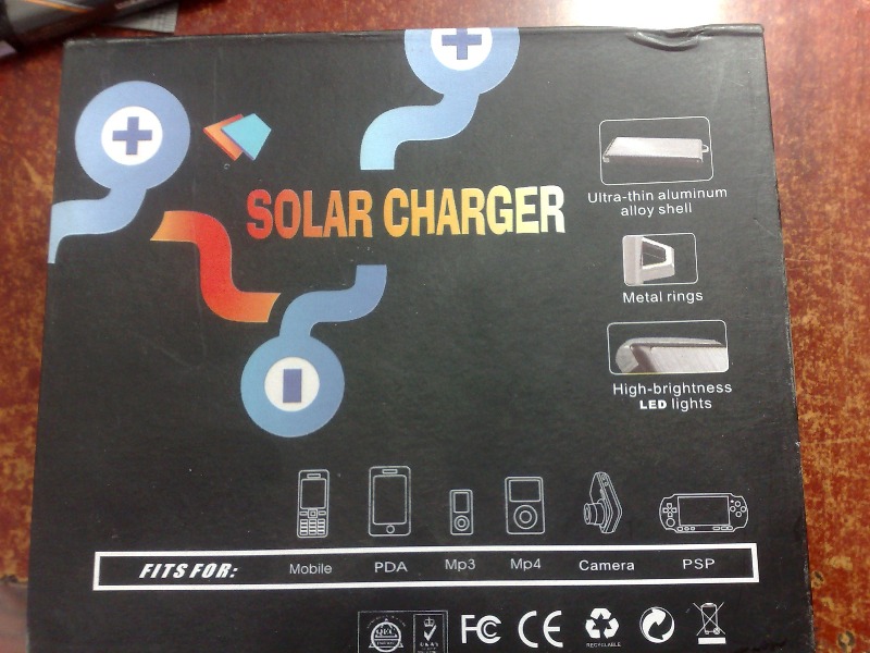 Довольно стильный внешний вид и компактные размеры устройство позволяют каждый день носить такую зарядку в кармане. Встроенная солнечная модуль при ярком освящении может вырабатывать ток до 30-35мА при напряжении 9 Вольт - это максимальные параметры модули, в реальных рабочих условиях ток не более 20мА.