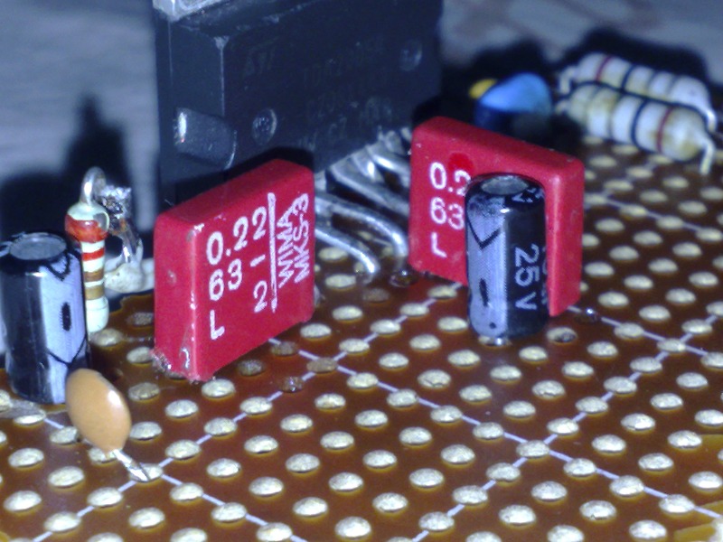 Входные конденсаторы подбираются с емкостью 0,1-0,5мкФ (емкость подбирается по вкусу, чем больше, тем мощнее низкие частоты).
