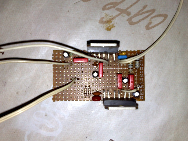 TDA2005 - стереофоническа микросхема УНЧ с достаточно неплохими параметрами. Микросхема способно развивать мощность до 10 ватт на канал, в мостовом включении до 20 ватт ( в некоторых архивах до 25 ватт). Эта вполне нормальная мощность для питания штатных автомобильных головок (блинов). На заказ был собран автомобильный усилитель с применением двух микросхем, каждая из них включена по мостовой схеме.