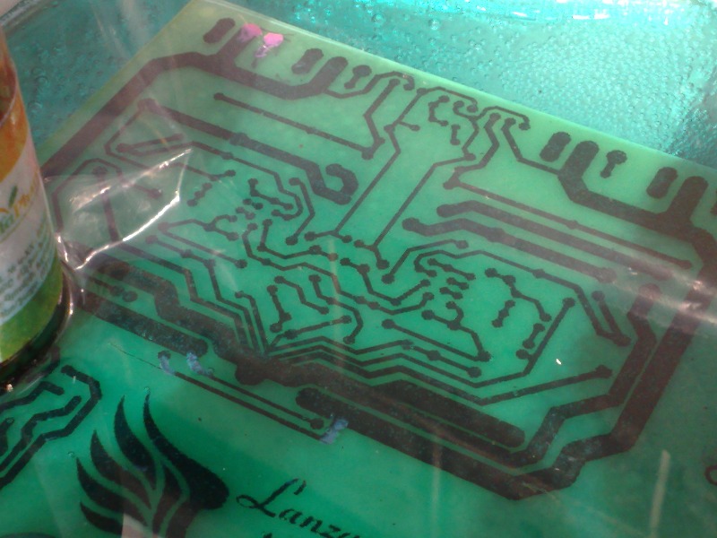 С реагентами для травления у нас проблема, поэтому раствор был изготовлен из 11 бутылок перекиси водорода, 8-и пакетиков лимонной кислоты и 5 чайных ложек поваренной соли. Все компоненты тщательно нужно смешивать, чтобы до полного растворения соли и лимонной кислоты.