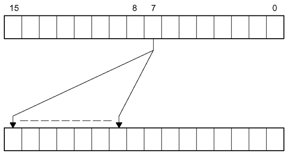 Знак младшего байта распространяется в старшем байте, как показано на рис.3.19. |