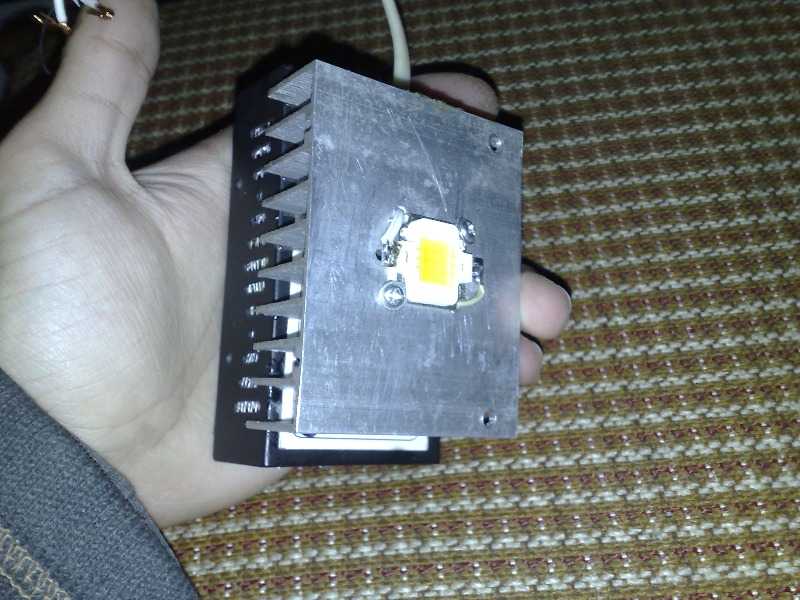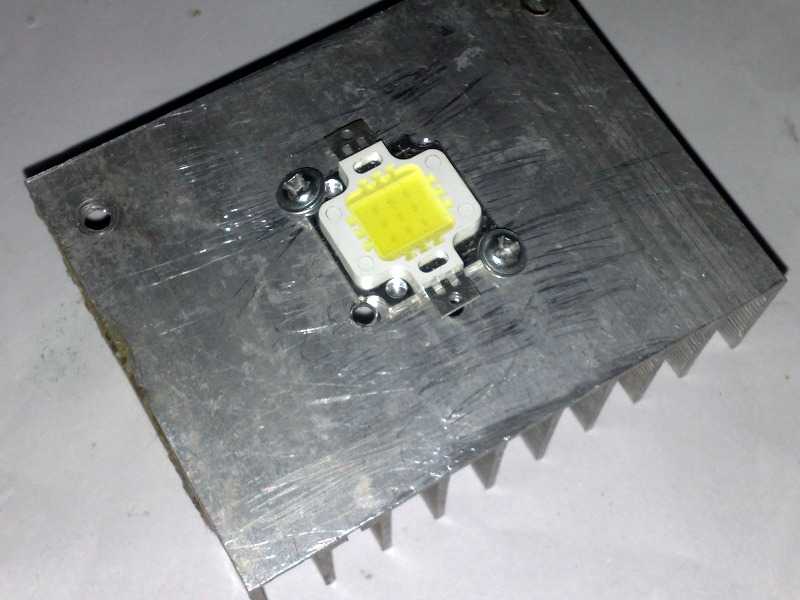Сам светодиод поставил на достаточно большой теплоотвод, который раньше использовал для охлаждении микросхемы TDA2050.