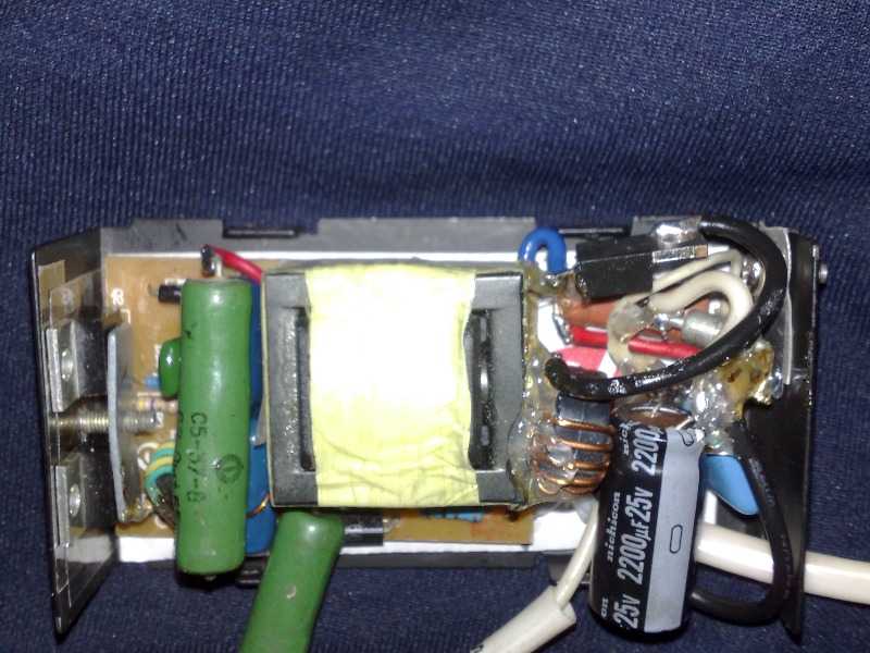 Поскольку светодиод пришел без ИБП, начались задумки. Было два варианта БП для этого зверя - использовать маломощный ИБП и не тратить время и нервы или переделать китайский ЭТ. В битве питальника победил электронный трансформатор от китайского производителя на 105 ватт. Как мы знаем, электронный трансформатор такого рода является сетевым ИБП, на выходе которого образуется переменное напряжение 12 Вольт. Именно такое напряжение нужно для питания нашего светодиода.