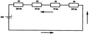 На рис. 7.4 показан пример последовательного соединения 4 резисторов.