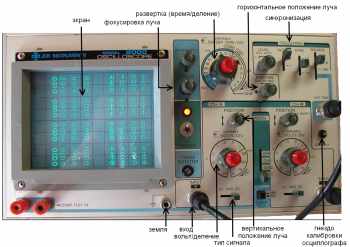 На экране осциллографа можно видеть градуированную сетку; ось X (горизонтальная) служит для отсчета времени, а ось Y (вертикальная) — для отсчета величины напряжения сигнала. Для определения же цифровых значений времен и напряжений нужно при помощи сетки посчитать количество клеток на экране и умножить на коэффициент, соответствующий одной клетке (см. далее по тексту).